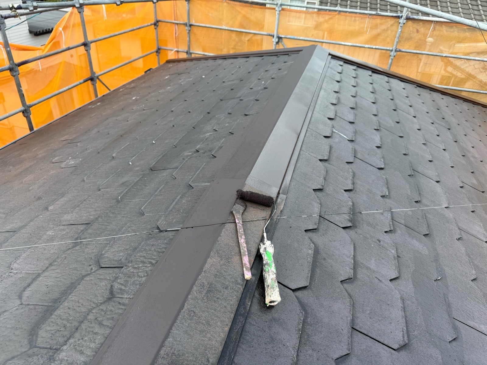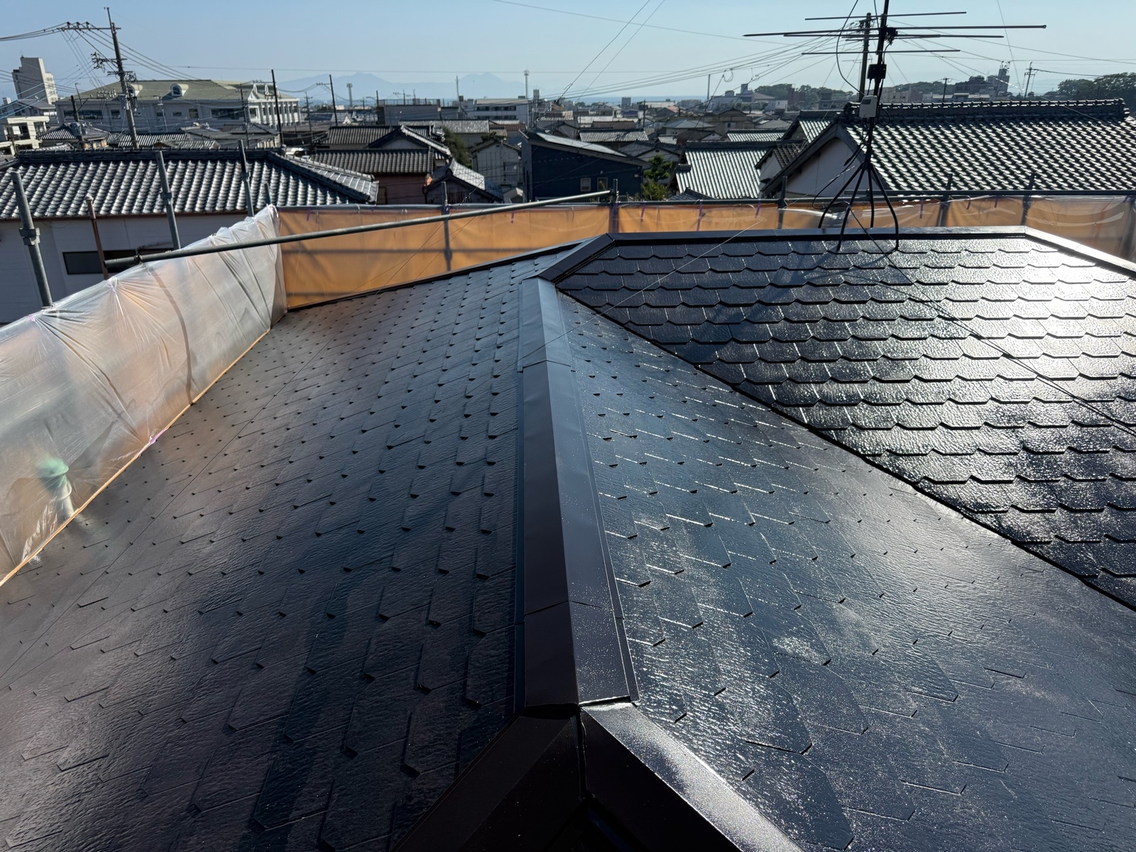 屋根の塗装も行い、色が入ることで見た目も変わり新築のような仕上がりとなりました。