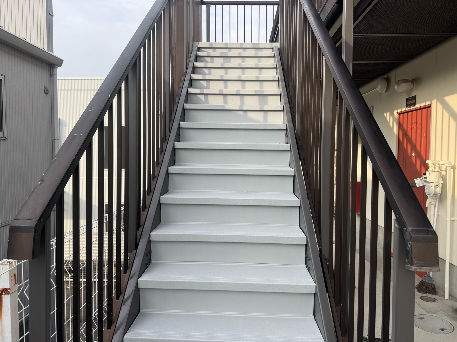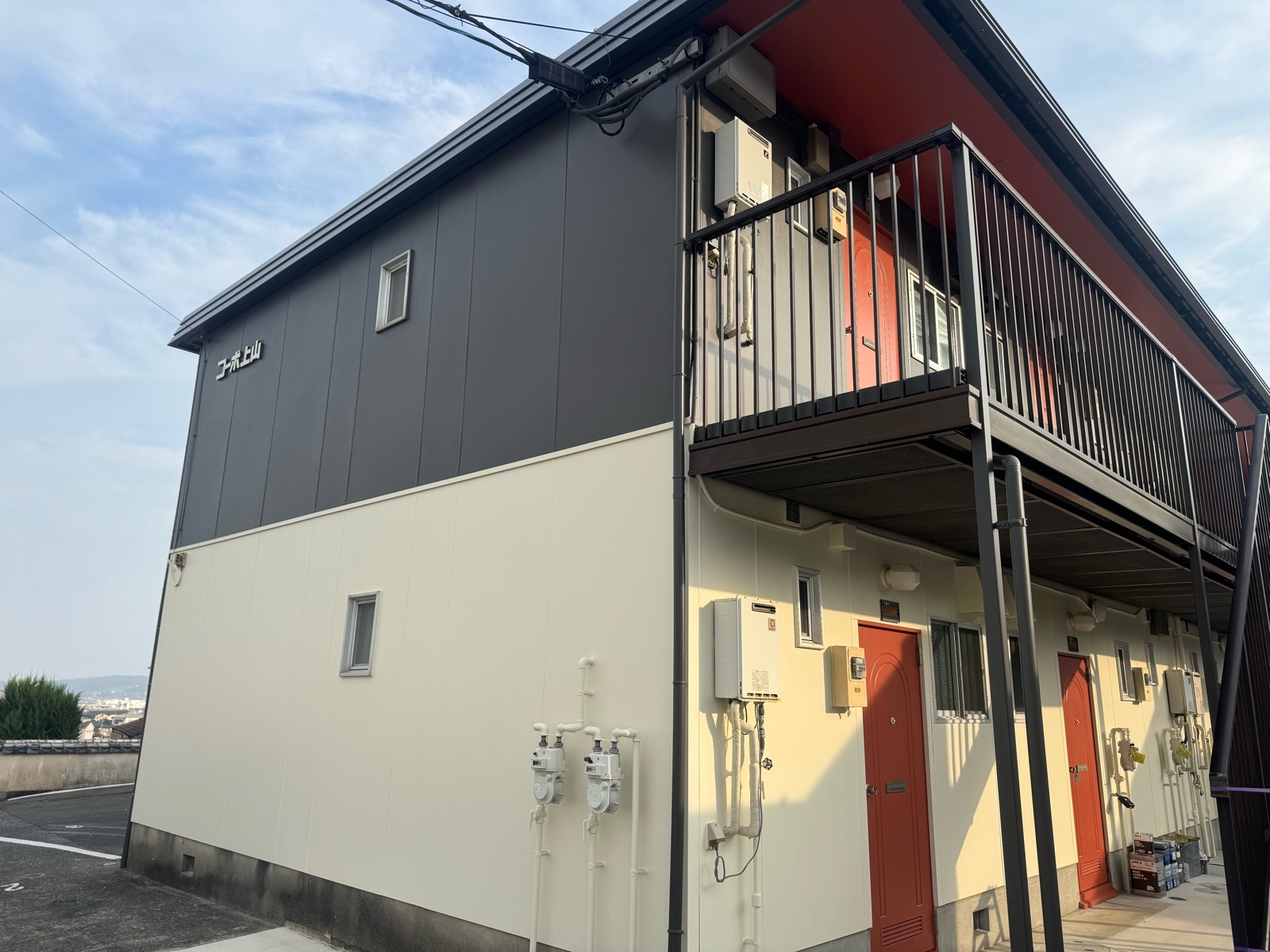 単色だったアパートも、濃い色を含めツートンカラーにすることでガラリと印象が変わりました。